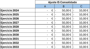 Siguiendo el ejemplo anterior, a nivel Grupo se integrarían las siguientes cantidades correspondientes a las entidades B y C mediante un ajuste negativo en el modelo 220: